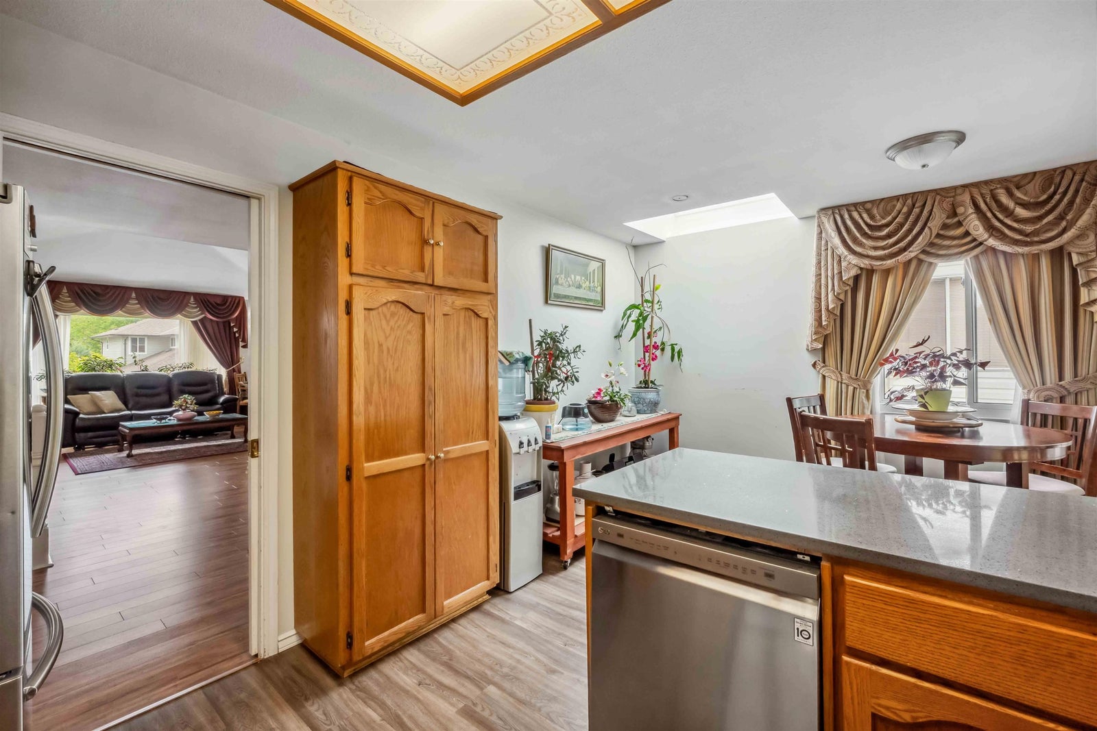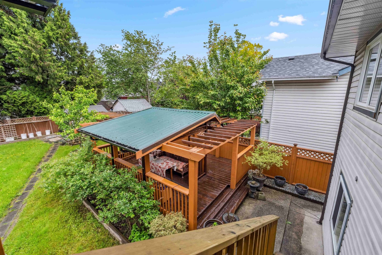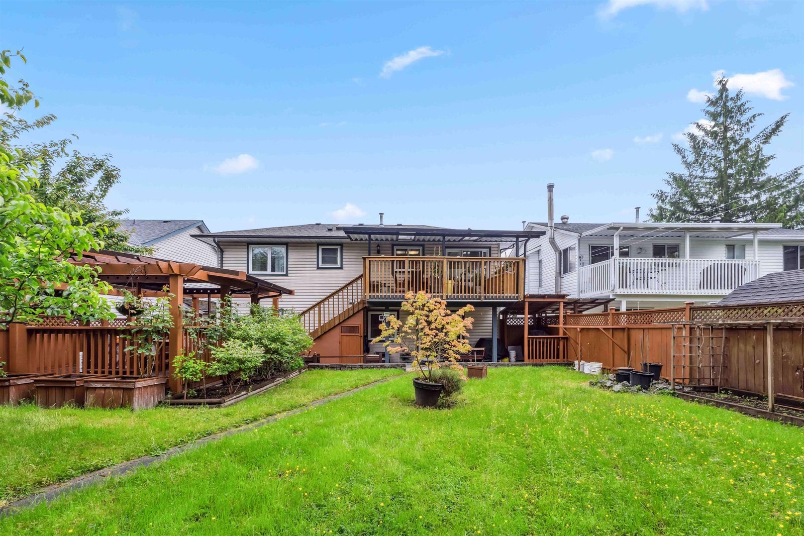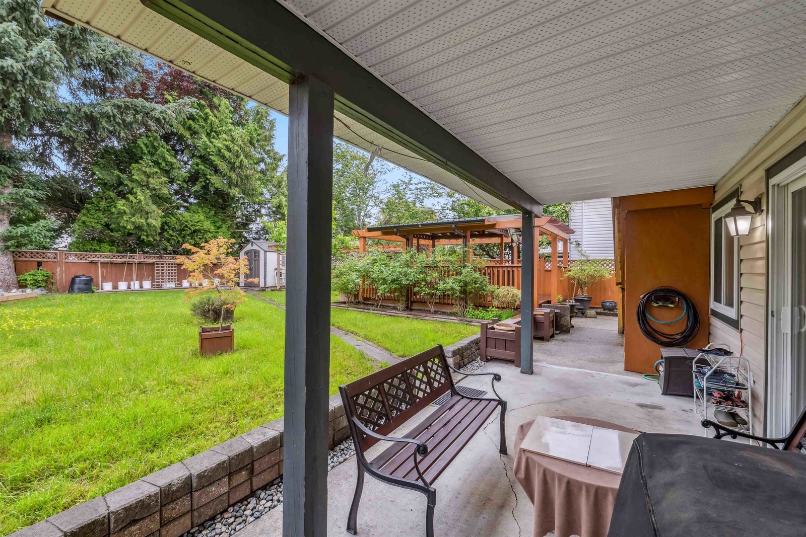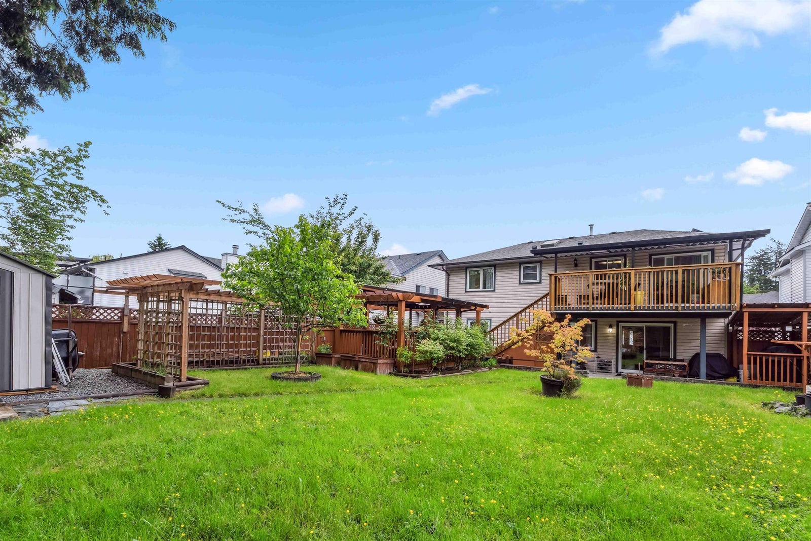 Tucked away on a quiet, family-friendly cul-de-sac, this well-maintained home offers incredible value in a prime location. Featuring 3 spacious bedrooms on the main level and a fully finished 2-bedroom suite below. (with 6th bedroom down) Ideal for extended family living or rental income. The main floor boasts a bright, open-concept living and dining area with large windows, laminate floors, and plenty of natural light throughout. A/C & triple-glazed windows ensure year-round comfort and efficiency, while the newer covered aluminum patio provides the perfect spot to relax on warm summer nights. Embrace outdoor living with a dry covered Gazebo/ coffee retreat! Great for Located just steps from transit, schools, and local parks - this home offers both privacy and unbeatable convenience!